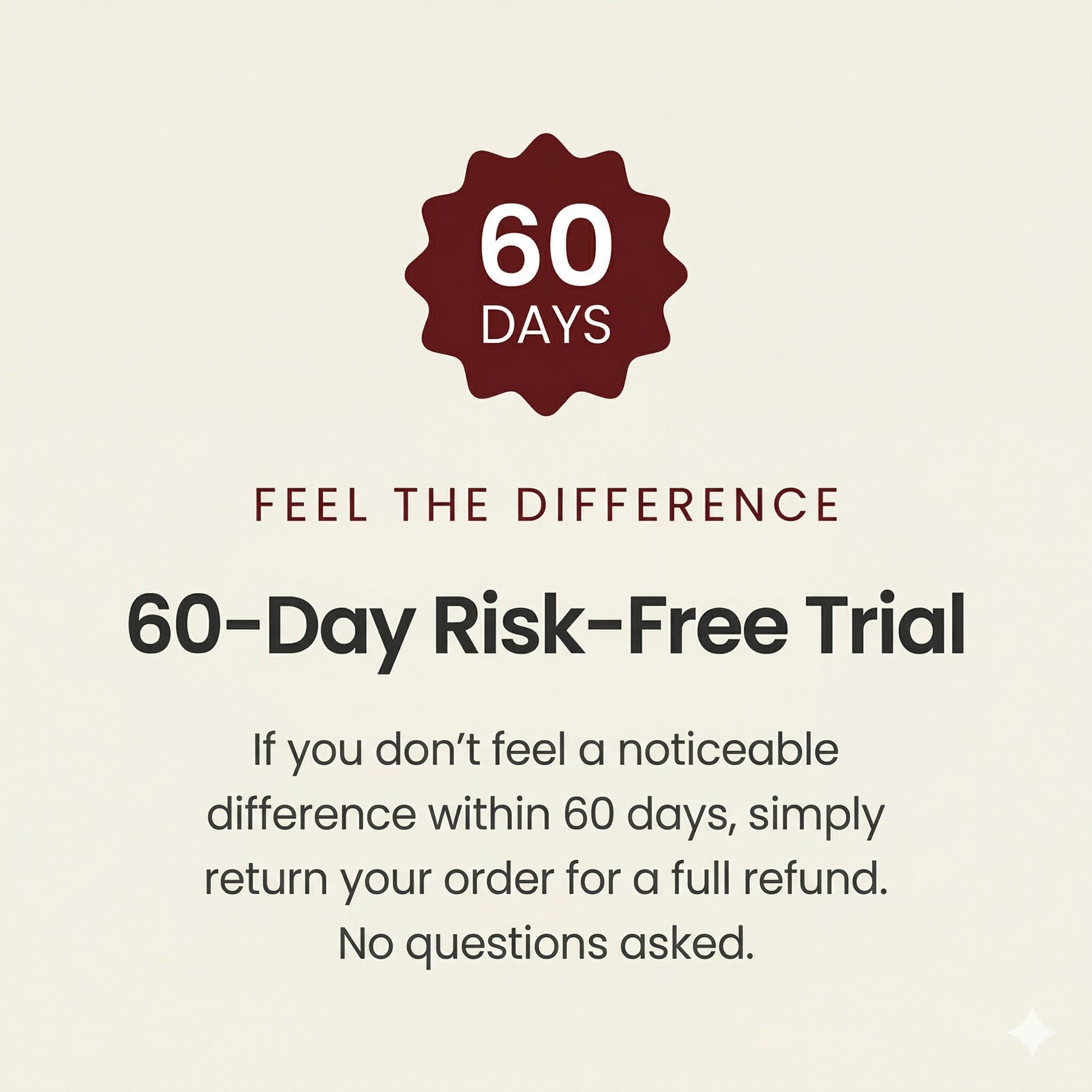 We offer a 60-day money-back guarantee. If you don't notice less joint pain or stiffness within 60 days of receiving your order, simply return it for a full refund.